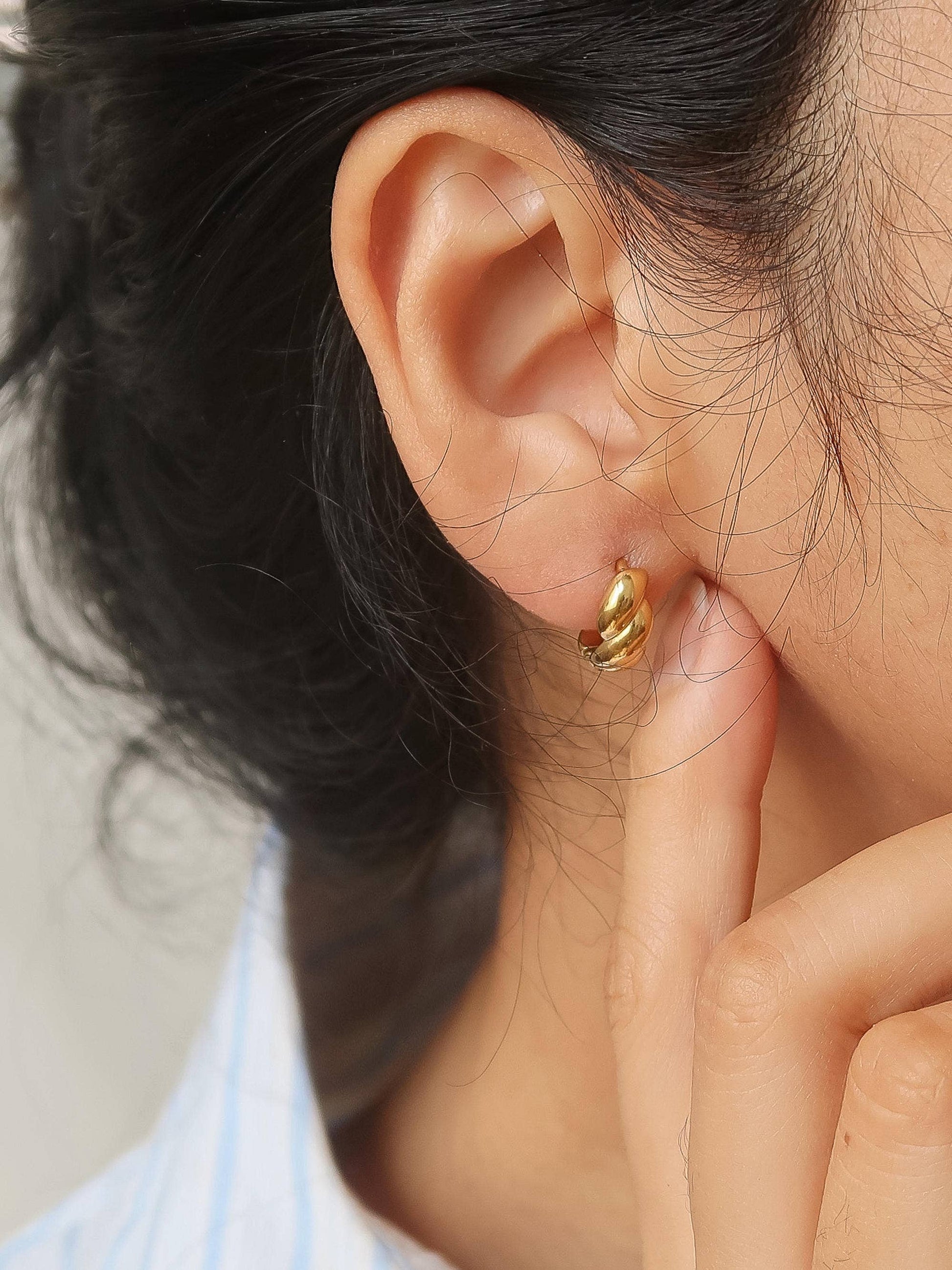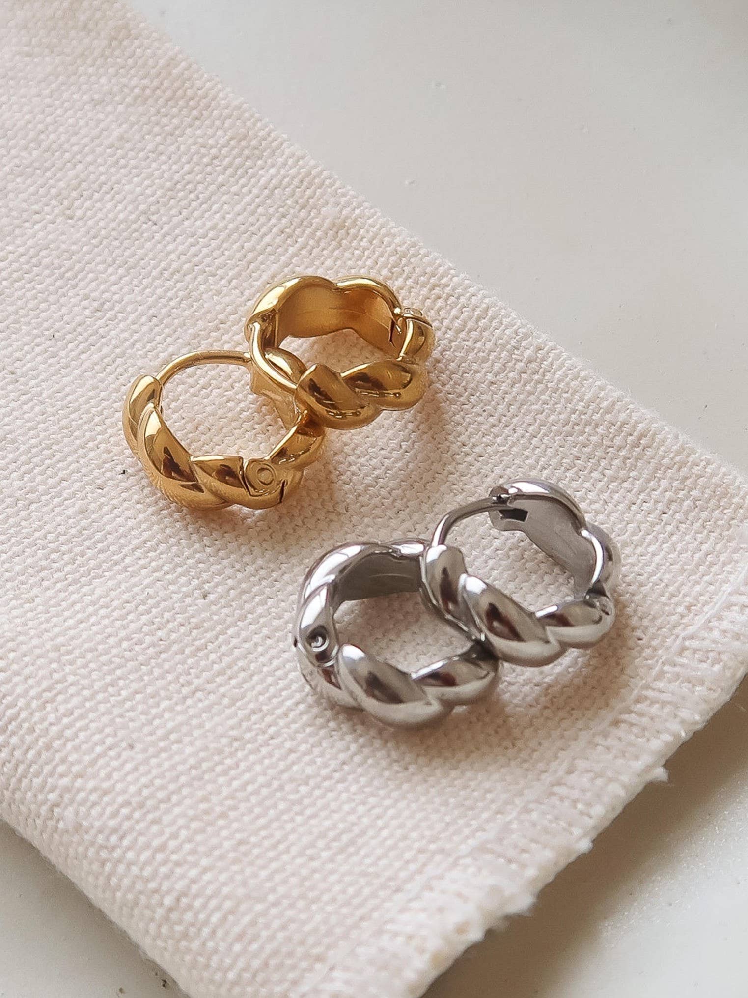 18K Gold Non-Tarnish Twisted Hoop Earrings