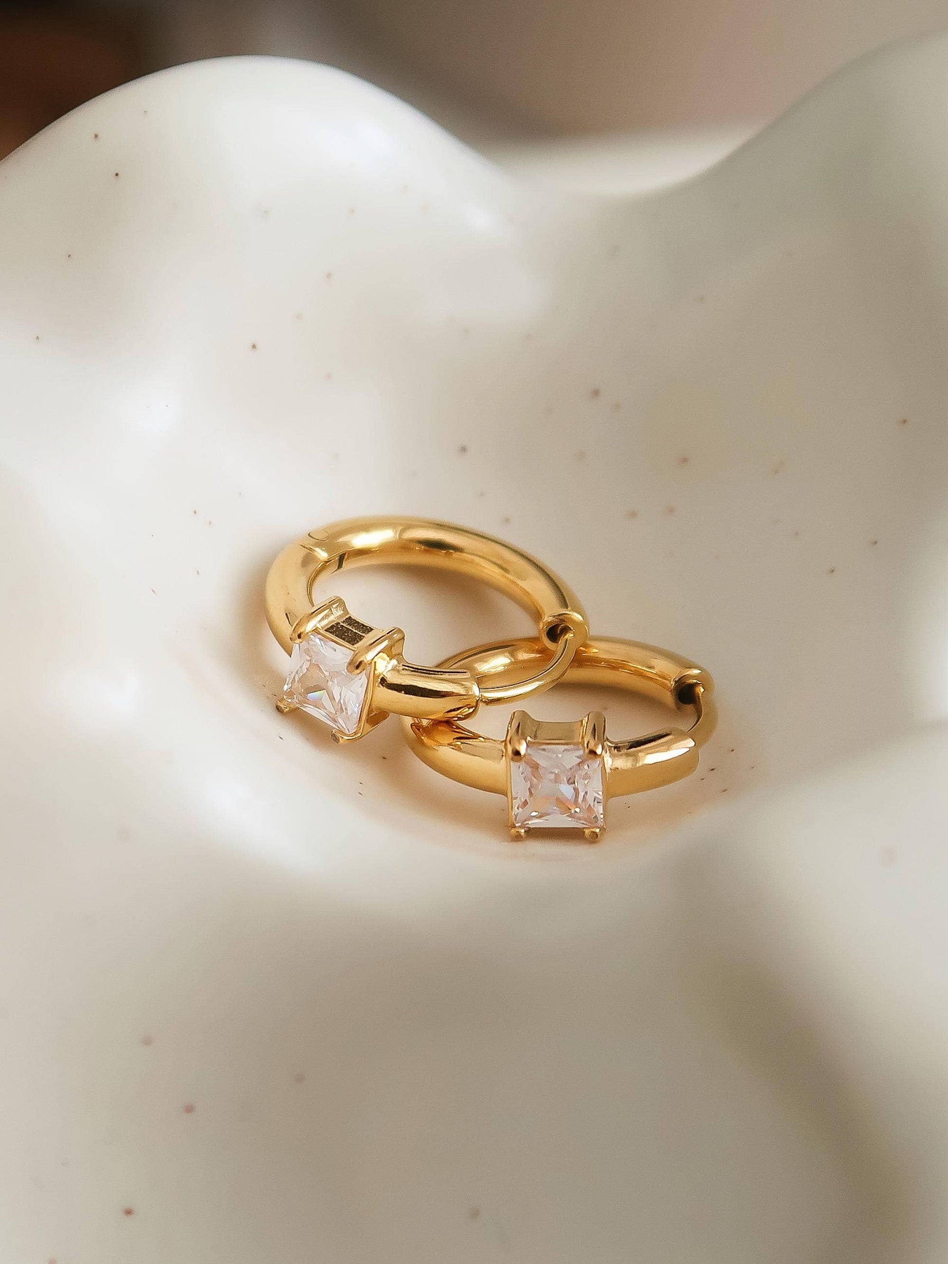 Tiny sparklers that hug your ear just right. These Clara Hoops pack serious shine with 18K gold plating and cubic zirconia that catches the light like nobody's business. Hypoallergenic, water-resistant, and built to stay brilliant—no tarnish drama. Perfect for everyday glam or layering with your other favorites.